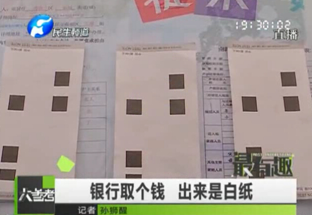 奇:取款機里竟然取出白紙