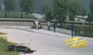三輪突然側(cè)翻 市民抬車救人