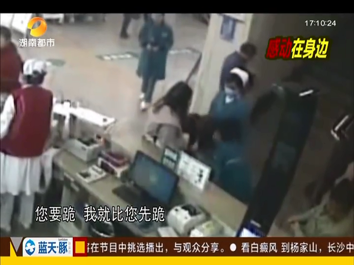 老人問診下跪致謝 護士跪地托舉