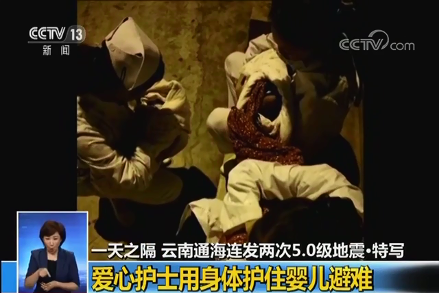 一天之隔 云南通海連發(fā)兩次5.0級(jí)地震·特寫 愛心護(hù)士用身體護(hù)住嬰兒避難