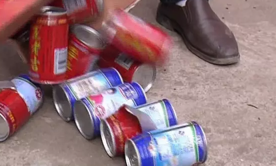 揭開(kāi)所有罐體上面的塑料層,這下徹底開(kāi)了眼界,這里面還有杏仁露、核桃露,而且有的還是啤酒罐,罐體可以說(shuō)是五花八門(mén),這下大伙才明白過(guò)來(lái),買(mǎi)到假貨了。無(wú)獨(dú)有偶,駐馬店確山縣的李大哥也收到了假冒的王老吉。