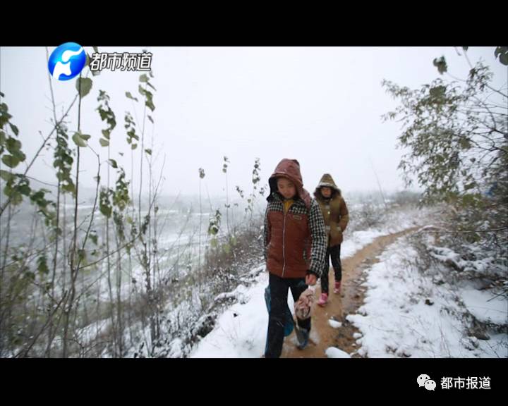 放學了,姐弟倆從學校到家要走六七公里山路,這樣下雪的天氣里,他們得比平常更小心。而此時家里的爸爸丁保平,也焦急得在家門口等待孩子們回家。