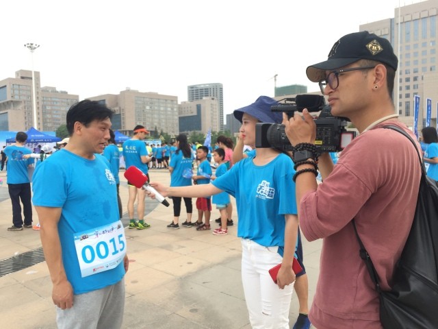 都市頻道主持人劉雯和杜瑞雪開跑前與跑者們大合影