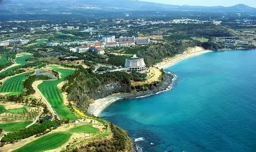 【龍頭巖】位于濟(jì)州市中心的龍?zhí)抖吹暮_叄嗡粕裨拏髡f中的一條巨龍,200萬前年熔巖噴發(fā)后冷卻而形成的巖石,高10米,長30米??瓷先ハ笫窃邶垖m生活的龍欲飛上天時突然化作石頭一般。正是由于巖石一端頗似龍頭,故得名龍頭巖。