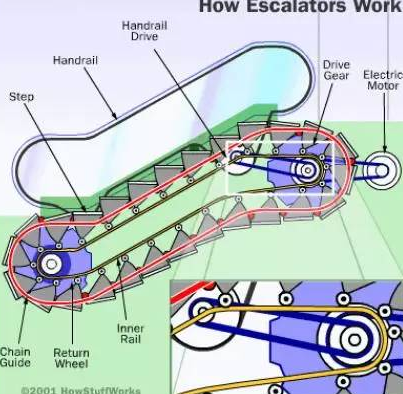 萬一乘坐電梯出事,你必須了解無論上的方向還是下的方向,手扶電梯的一側(cè)下方都有一個(gè)紅色的緊急停止按鈕。
