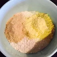 1. 準(zhǔn)備好三種面粉,比例基本是4:1:1,當(dāng)然只有白面粉也可以,或者可以隨意加入其他面粉。