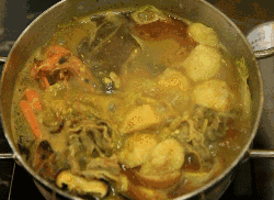這傳奇辣椒咖喱鍋好吃的秘訣在于這醬料,微辣的紅咖喱和濃郁的黃咖喱經(jīng)過精心配比,再加上天然檸檬和香茅草,煮上24個小時就能制作成口感濃郁香而不膩的咖喱醬料了。