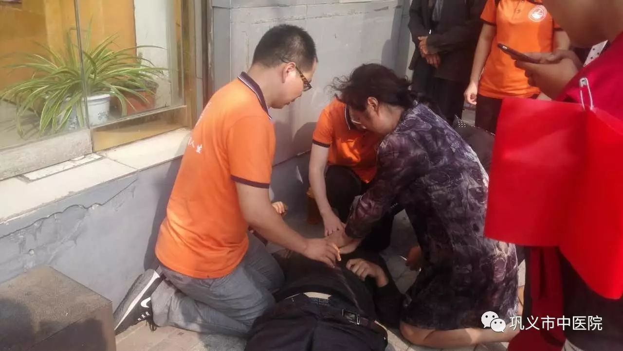 “我是護士,讓我來!”喬紅連忙上前,向?qū)Ψ奖砻孀约菏庆柫x市中醫(yī)院護士后,趕緊上前查看,發(fā)現(xiàn)頸動脈搏動微弱,橈動脈消失,呼吸輕微,雙目上翻,瞬間大動脈搏動消失,多年的臨床經(jīng)驗判斷為“心臟驟停”,情況十分危急,當(dāng)即把暈倒老人放平,喬紅顧不上自己穿著短裙行動不便,迅速雙膝跪地開始實施徒手心肺復(fù)蘇。同時,讓圍觀群眾撥打急救電話。
