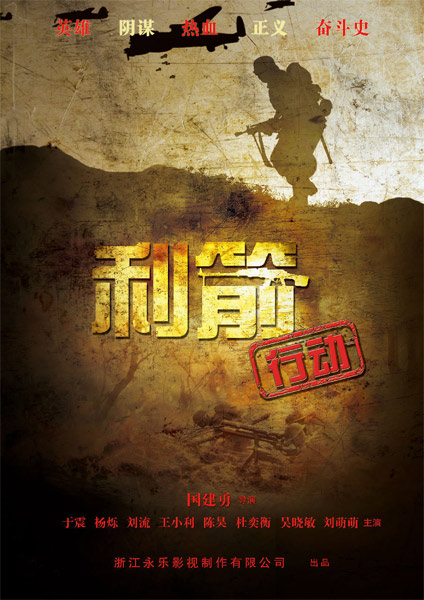 電視劇《利箭行動(dòng)》是浙江永樂影視制作有限公司最新抗戰(zhàn)動(dòng)作傳奇巨制,該劇由著名導(dǎo)演國建勇執(zhí)導(dǎo),匯聚了于震、楊爍、劉流、陳昊、王小利、杜奕衡劉萌萌、 吳曉敏等眾多青年實(shí)力派明星。該劇講述了“中條山戰(zhàn)役”后,八路軍偵查連長李劍臨危受命,冒充南京臨時(shí)政府特派員章云飛混入皇協(xié)軍45旅。他率領(lǐng)部下六 人,組成了一支驍勇善戰(zhàn)的抗日特攻隊(duì),代號“利箭行動(dòng)”。