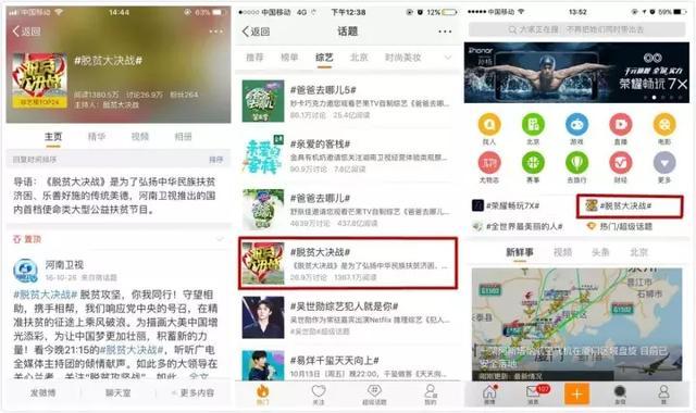 節(jié)目播出至今,“脫貧大決戰(zhàn)”早已在網(wǎng)絡(luò)社交平臺(tái)上引起了網(wǎng)友熱議。人民網(wǎng)、光明網(wǎng)、央視網(wǎng)、中國網(wǎng)、環(huán)球網(wǎng)、騰訊、新浪、網(wǎng)易、今日頭條、百度等數(shù)百家媒體進(jìn)行轉(zhuǎn)載,新浪微博、微信公眾號(hào)等大量自媒體號(hào)廣泛傳播。統(tǒng)計(jì)顯示,截至11月30日,《脫貧大決戰(zhàn)》在新浪微博話題綜合榜上排名第七,全國綜藝榜排名第二,新浪微博閱讀量達(dá)到了7990萬。