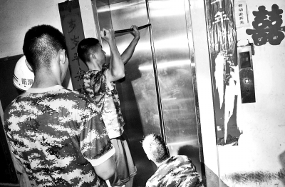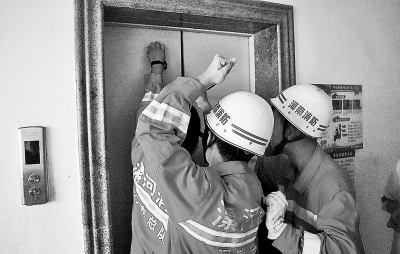 漯河消防官兵試圖打開(kāi)電梯門,救出被困的人。