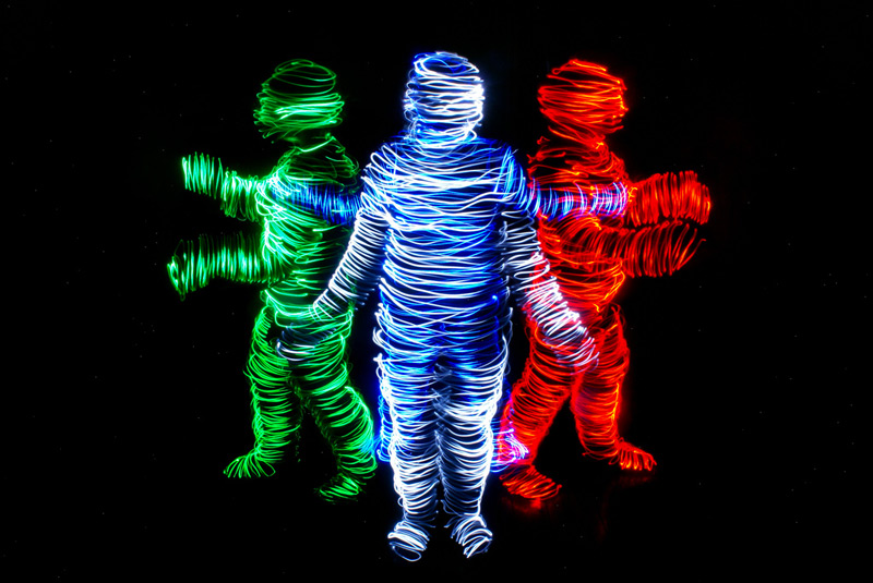 大多數(shù)藝術(shù)家都是通過畫筆在畫布上作畫,但是Janne Parviainen卻有些與眾不同。為了創(chuàng)造自己的魔幻肖像,這位芬蘭藝術(shù)家選擇用光線作畫,并且不經(jīng)過任何的數(shù)字化后期處理。他延長了曝光時間,并通過移動攝像機(jī)框架內(nèi)特定的光線進(jìn)行繪畫創(chuàng)作。他將繪畫和攝影完美地結(jié)合在了一起,經(jīng)過他的移動,那些神秘人物從黑暗中以螺旋形光束的形式呈現(xiàn)。