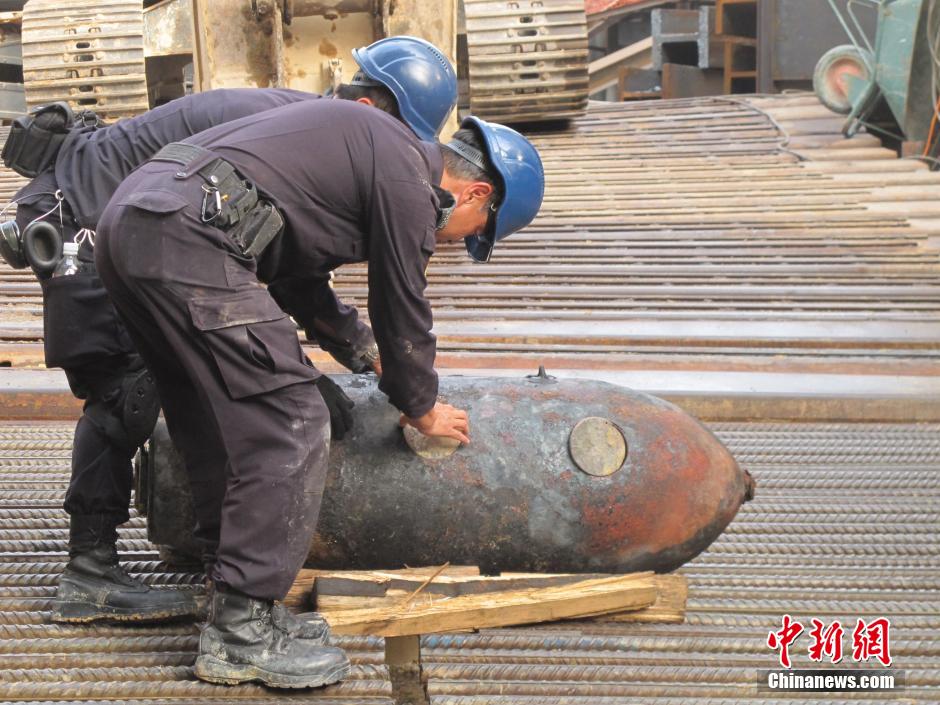 2月6日下午,香港跑馬地一處工地發(fā)現(xiàn)二戰(zhàn)時(shí)美軍投下的炸彈。炸彈重約2000磅(約907公斤)、內(nèi)含約1000磅(約453.6公斤)黃色炸藥,炸彈長(zhǎng)約67英吋、直徑約24英吋,引信仍然存在,炸藥亦有效。經(jīng)通宵作業(yè),香港警方7日早成功拆除炸彈。中新社發(fā) 趙建華 攝