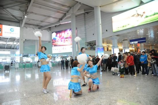 為穩(wěn)定旅客情緒,大連機場請來美女拉拉隊員跳操,引來眾多旅客圍觀。新青年網(wǎng)