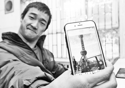 范廣照向記者展示他在上海旅游時(shí)的照片