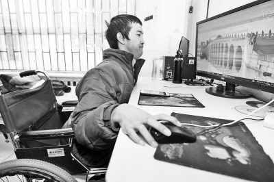 來福利院時(shí),他帶來了心愛的“寶貝”,是爺爺為他買的電腦。從小到大,輪椅上的他,自學(xué)電腦,并通過電腦了解到外面的世界。
