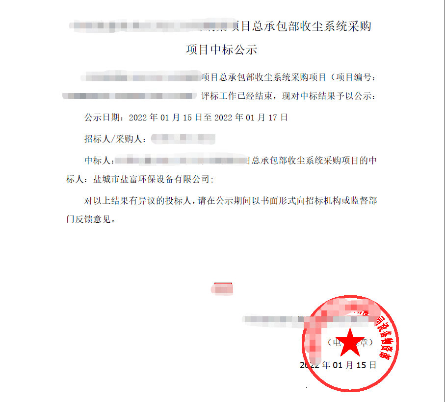 開年傳喜訊,近日從招標(biāo)單位傳來好消息,鹽富環(huán)保成功中標(biāo)又一大型砂石骨料項目總承包收塵系統(tǒng),實現(xiàn)開門紅。